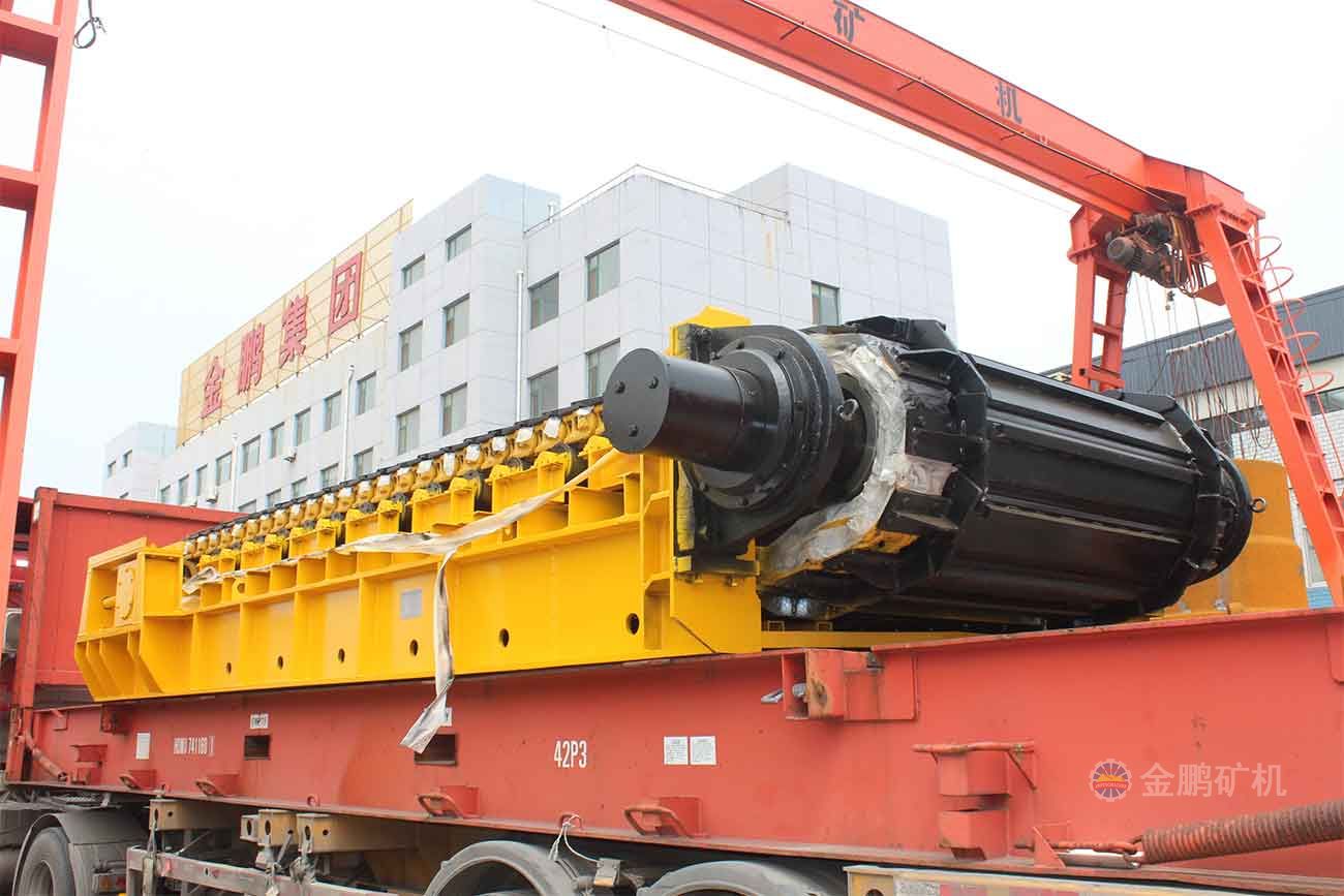采用節距為228.6mm的高強度模鍛鏈條為牽引件,兩根鏈條繞過安裝在機體頭部的一對驅動鏈輪和機體尾部的一對張緊輪聯成封閉形回路,在兩排鏈條的每個鏈節上裝配了相互交迭的、重型結構的輸送槽而成為一個連續的能夠運載物料的輸送線路。其自重和物料的重量由安裝在機體上的多排支重輪、鏈托輪和滑道梁支承。傳動系統經交流變頻調速電動機聯接減速機,再由漲套與驅動裝置直聯驅動運載機構低速運行。將尾部料倉卸入的物料沿輸送線路運至機體的前方排出,實現向下方的工作機械連續均勻喂料的目的.