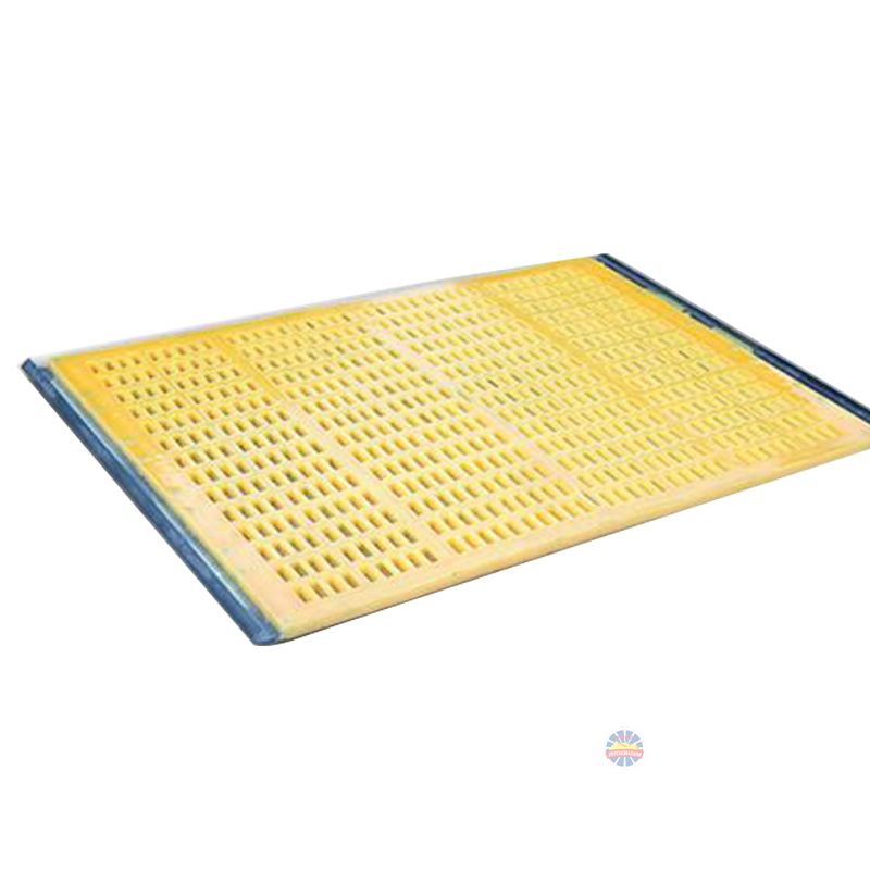 (1).篩網縱橫條均由高耐磨聚氨酯材料制成,條內含鋼絲。使用壽命較傳統金屬篩網高3-10倍。